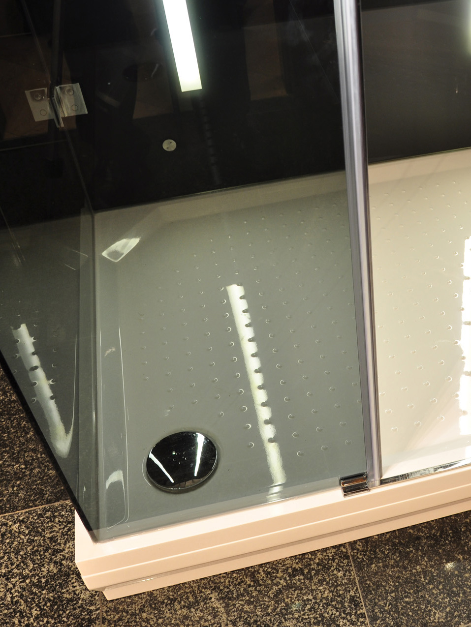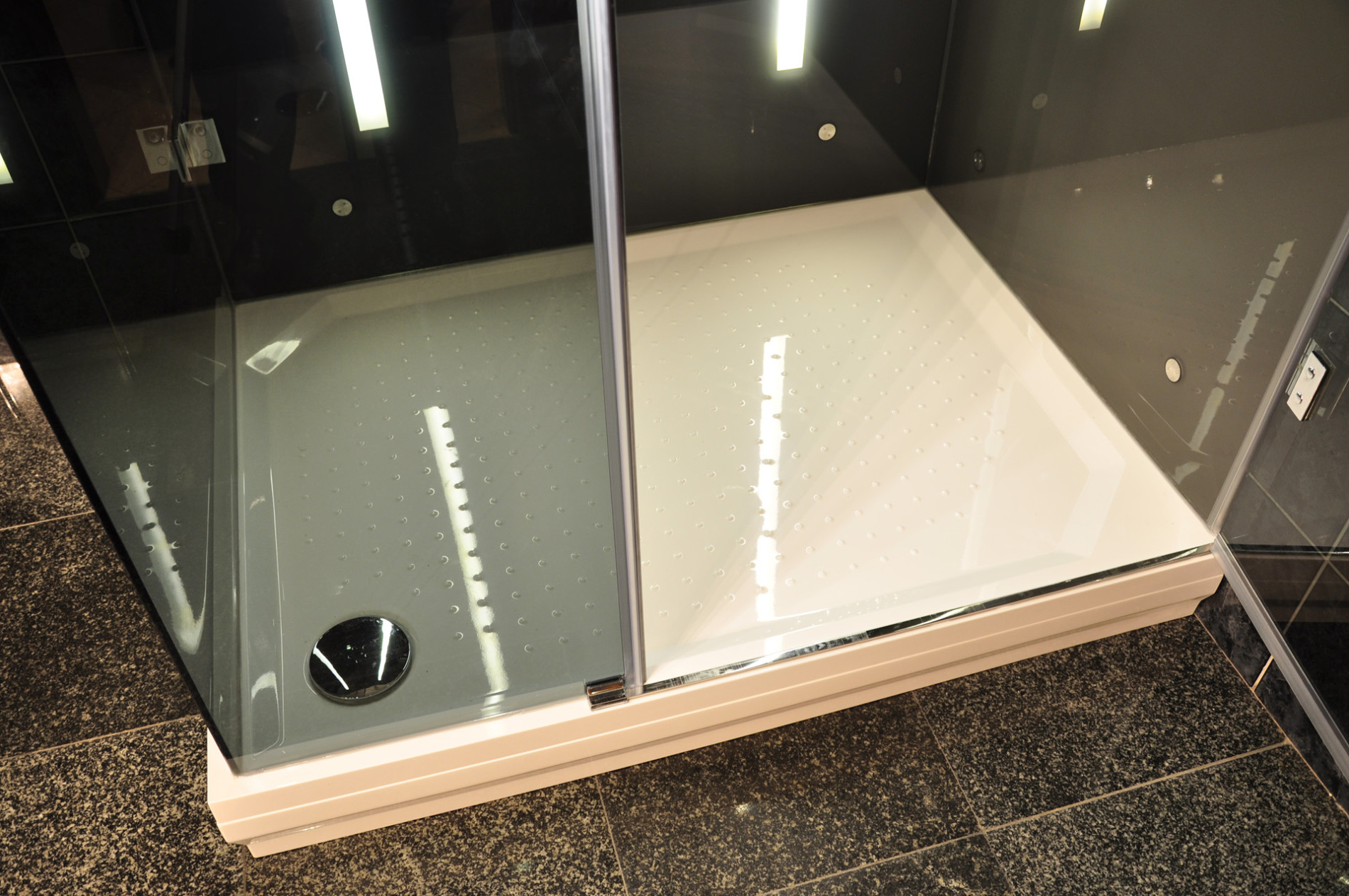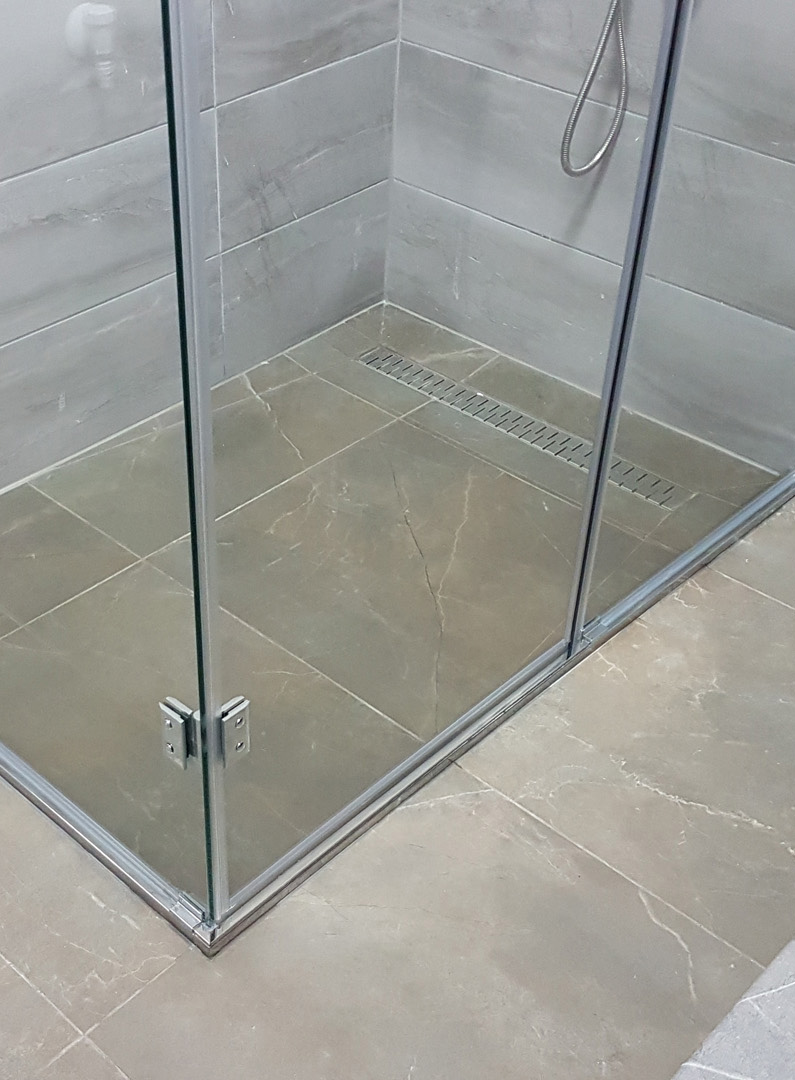 Csúszásmentes felület, alacsony belépés, rejtett lefolyók, és mindez illik a zuhanykabin stílusához.